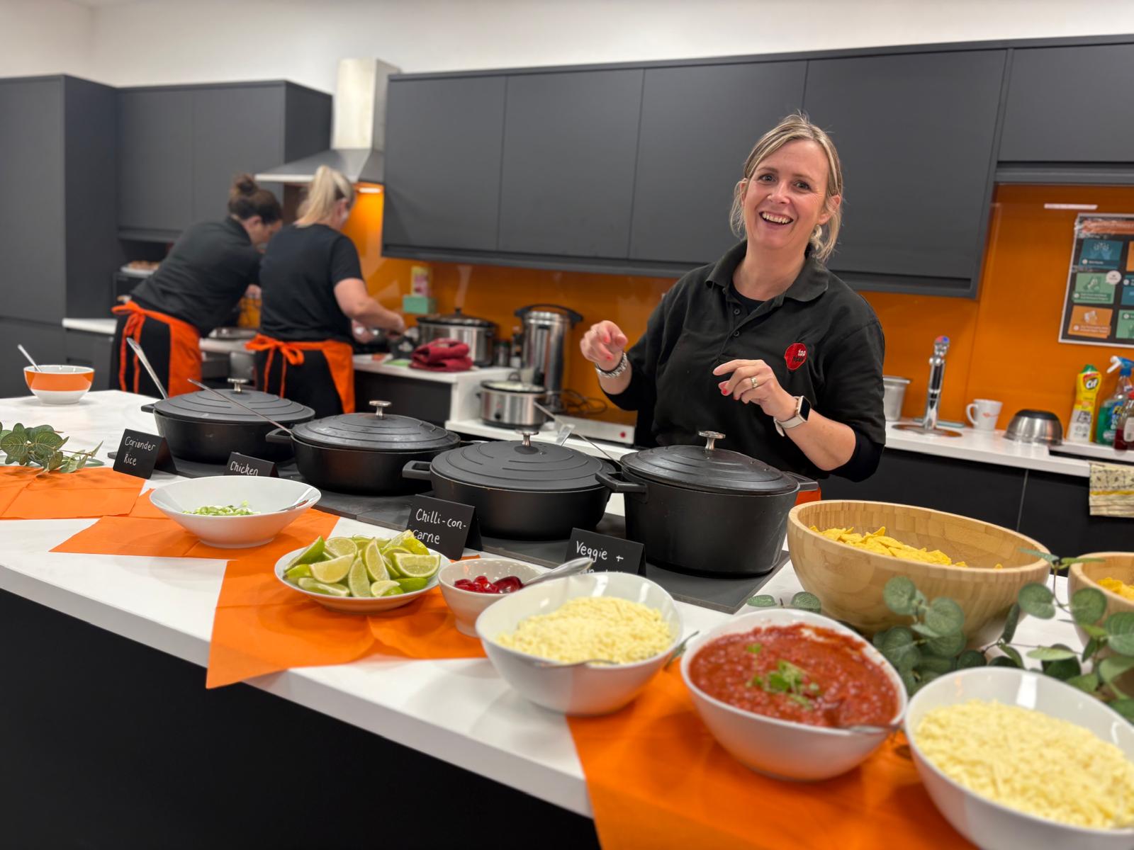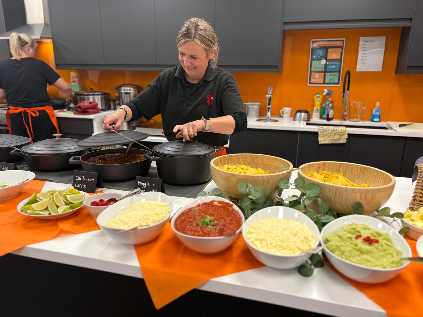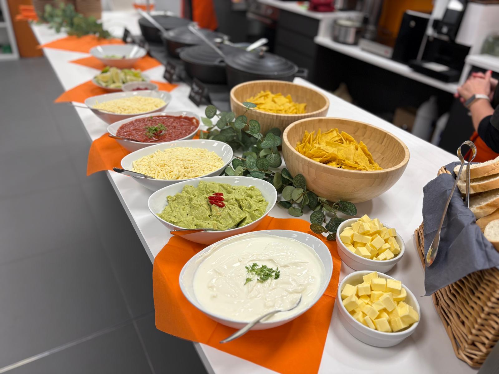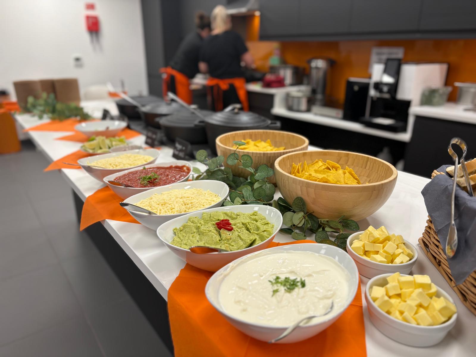 We catered a Mexican-themed hot buffet for Gallagher, featuring beef chili, vegan chili, nachos, guacamole, crispy chilies, grated cheese, and a variety of sides. The spread was beautifully arranged in their staff kitchen, serving 50 team members. Additionally, we provided a bar service, which was a hit, and received plenty of positive feedback!