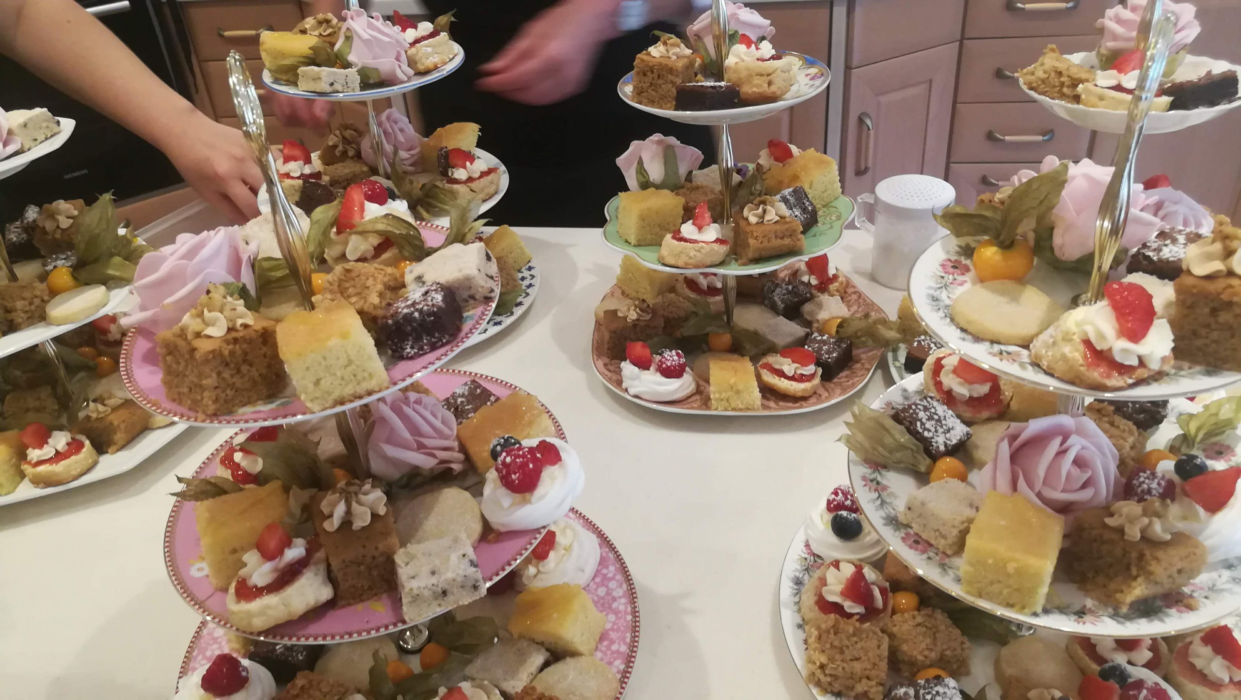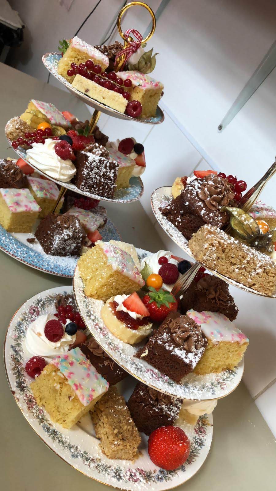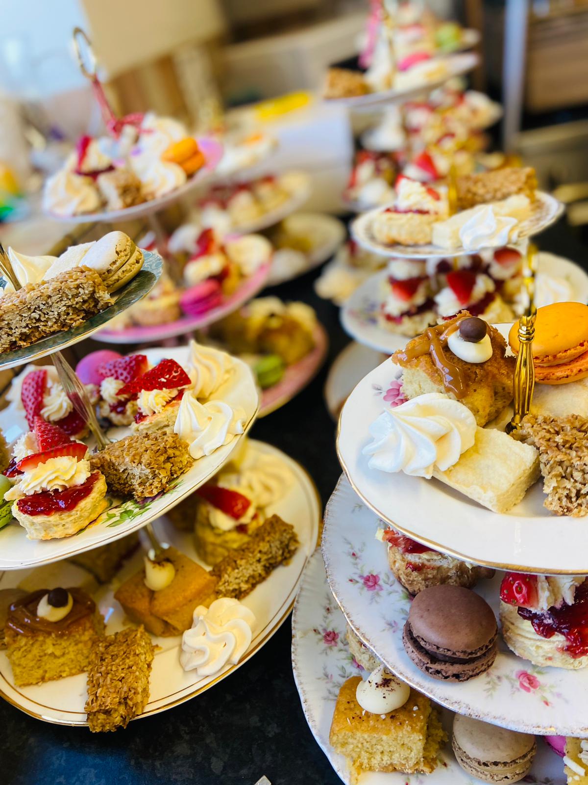 We served a delightful Afternoon Tea for guests at Hansgrohe in Warwick, complete with elegant cake stands and charming details. Our lovely waitstaff presented beautifully arranged stands featuring delicate sandwiches filled with smoked salmon and cream cheese, Coronation chicken, free-range egg mayo, and cream cheese with roasted peppers. The spread also included homemade sausage rolls, smoked salmon blinis with chives, individual quiches, freshly baked scones with clotted cream, and an assortment of cakes.
