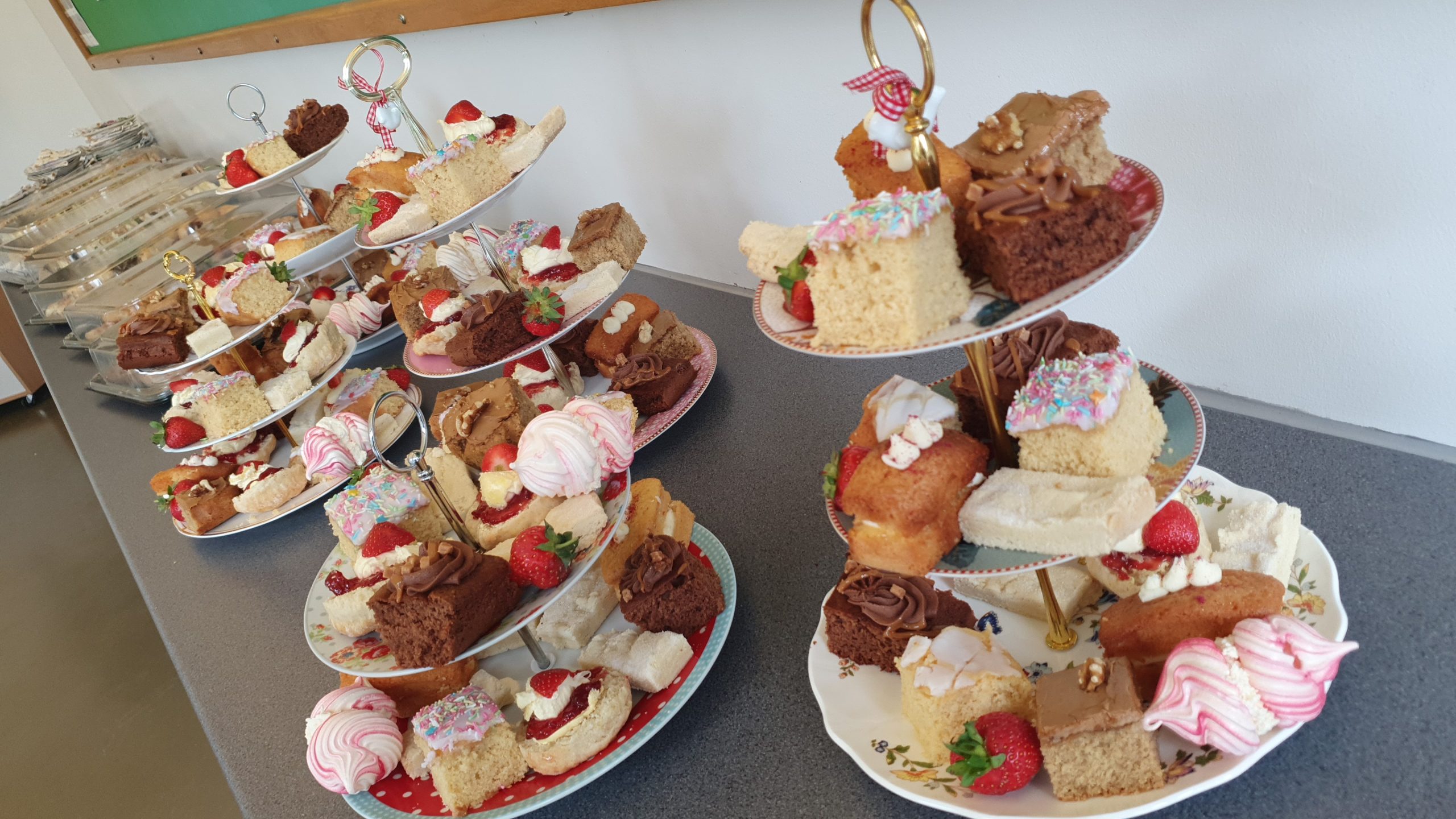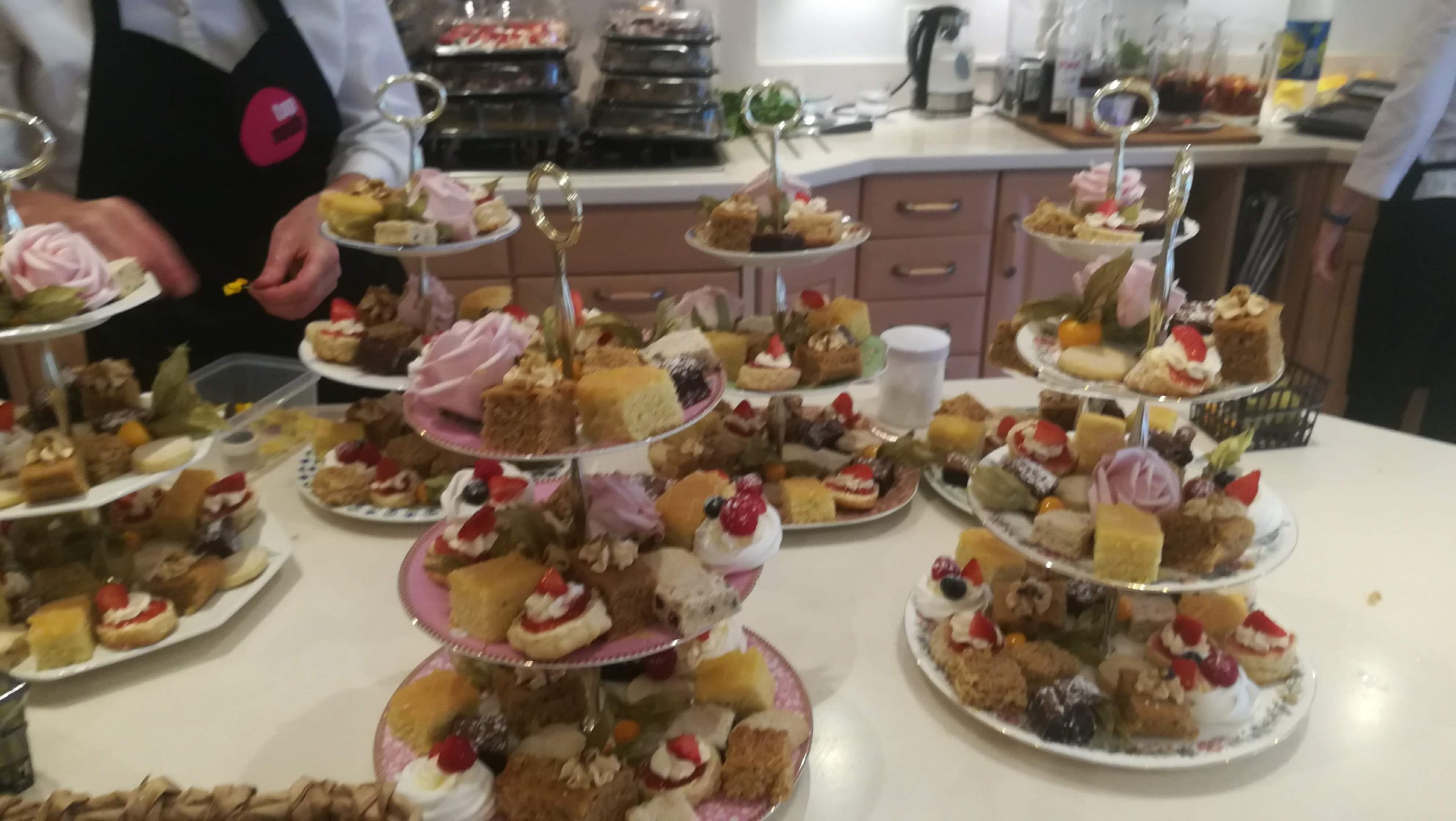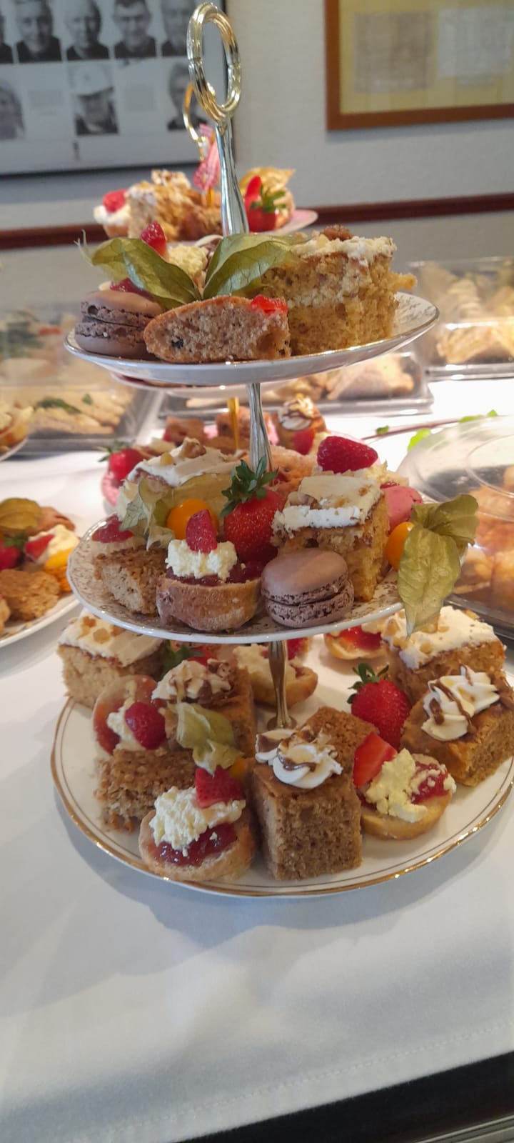 We served a delightful Afternoon Tea for guests at Hansgrohe in Warwick, complete with elegant cake stands and charming details. Our lovely waitstaff presented beautifully arranged stands featuring delicate sandwiches filled with smoked salmon and cream cheese, Coronation chicken, free-range egg mayo, and cream cheese with roasted peppers. The spread also included homemade sausage rolls, smoked salmon blinis with chives, individual quiches, freshly baked scones with clotted cream, and an assortment of cakes.